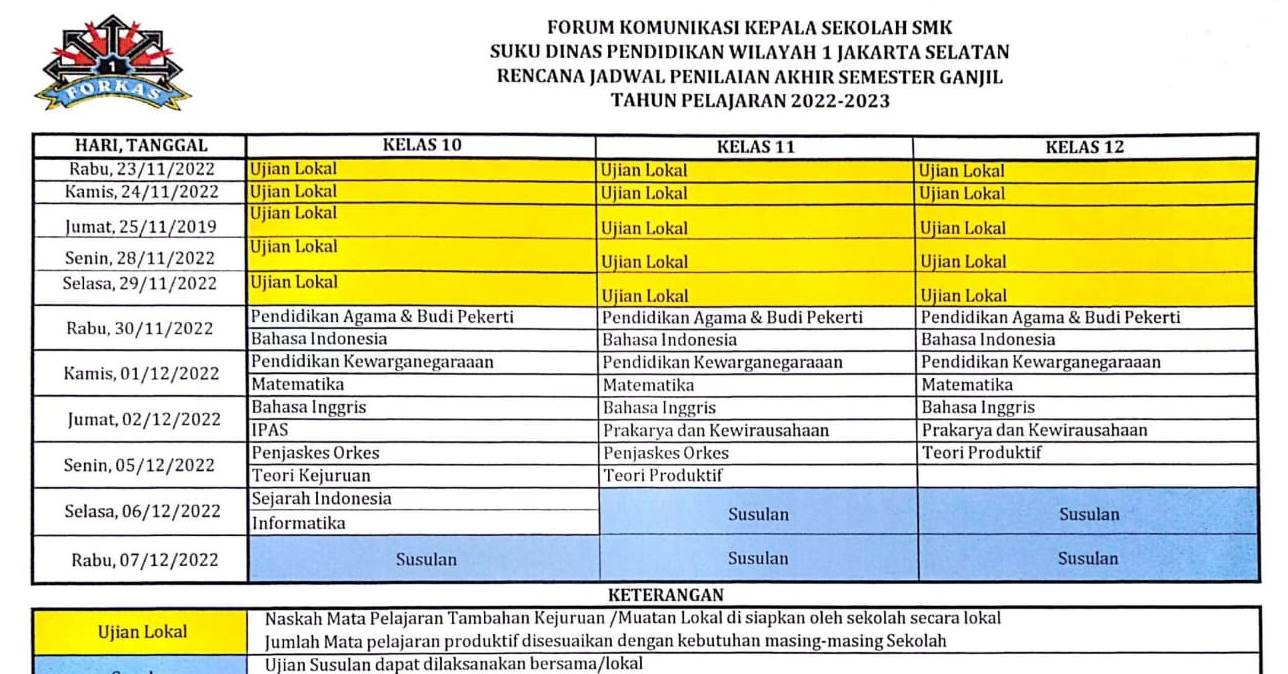 Jadwal Sumatif Akhir Semester / Penilaian Akhir Semester secara bersamaan